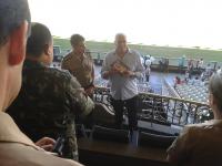 A Coordenadora Executiva e Social, Marta Tulio, recepcionando os oficiais do Exército