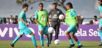 Na sequência, desta vez dividos em três grupos, sempre com um jogador na sobra, mais um trabalho de posse de bola com bastante movimentação. E, na última parte do treinamento desta tarde, o técnico Mano Menezes e o auxiliar Sidnei Lobo comandaram um treino com campo reduzido, dois times e os goleiros embaixo das balizas. Essa espécie de "joguinho" foi repleta de gols e animou a criançada que acompanhava a atividade.
