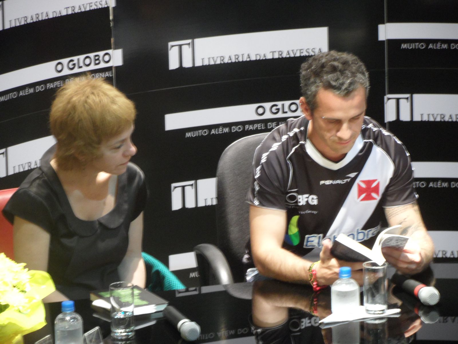 Após ser um dos grandes destaques da Festa Literária de Paraty, a FLIP, o escritor português José Luis Peixoto foi presenteado com uma camisa do Vasco. O autor recebeu o presente durante o evento de divulgação do novo romance chamado “Livro”, que contou com um encontro com a escritora Dulce Maria Cardoso, na livraria da Travessa, no Leblon, Zona Sul do Rio.