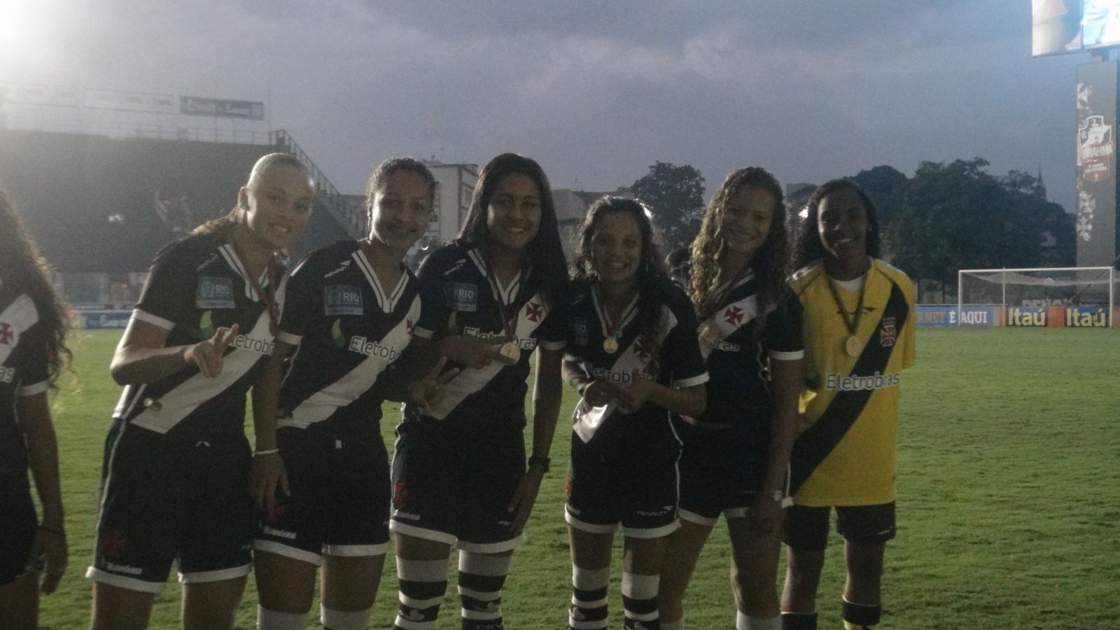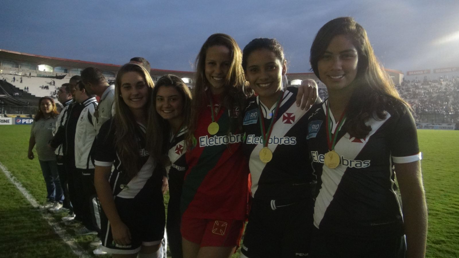 A noite em São Januário contra o Atlético-GO começou com volta olímpica. As meninas do sub-17, campeãs do Mundialito de clubes em Portugal e as vascaínas do beach soccer, que conquistaram a Taça Brasil, na manhã deste domingo (15/07), com vitória por 4 a 1 sobre o Vitória de Pernambuco, correram com suas medalhas e taças e foram ovacionadas pela torcida. Os gols da vitória foram marcados Dani Barboza, Gi, Deise e Fabíola.