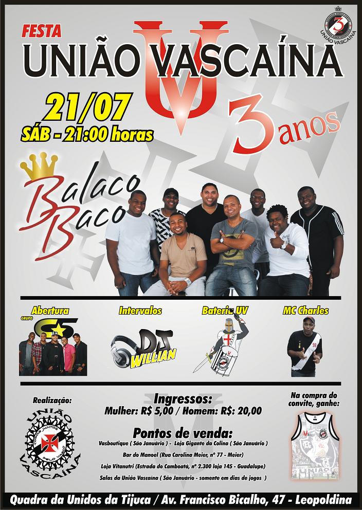 Neste sábado dia 21 de julho, a torcida União Vascaína estará comemorando seus 3 anos de apoio incondicional ao Vasco.
