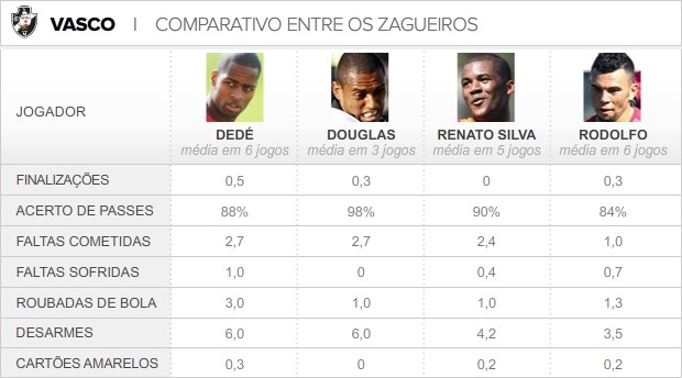 - O Douglas está fazendo suas melhores partidas pelo Vasco. Tem boa estatura e é excelente nas bolas aéreas. Possui as mesmas qualidades que as minhas e tem tudo para se tornar um dos melhores do elenco. Vai ganhar mais tranquilidade com o tempo - avaliou Dedé.