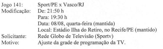 CBF antecipa horário de Sport x Vasco, no dia 8 de agosto