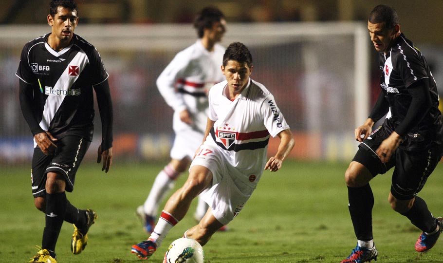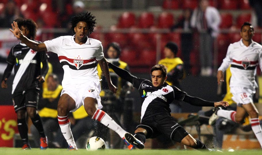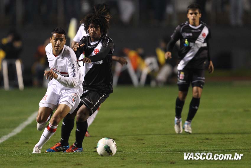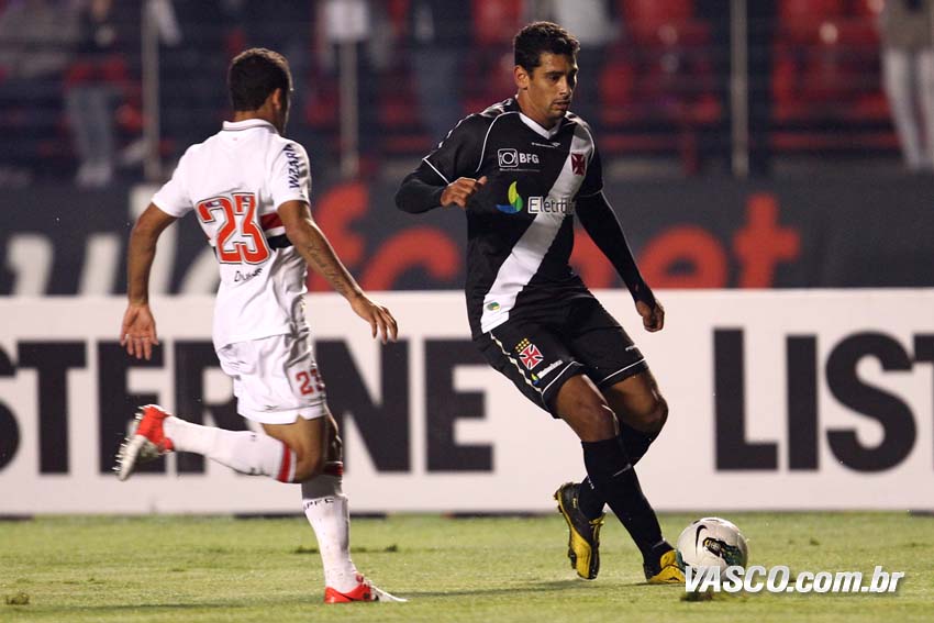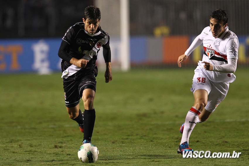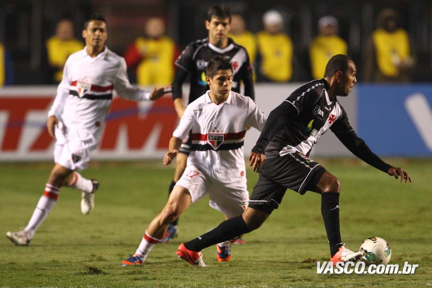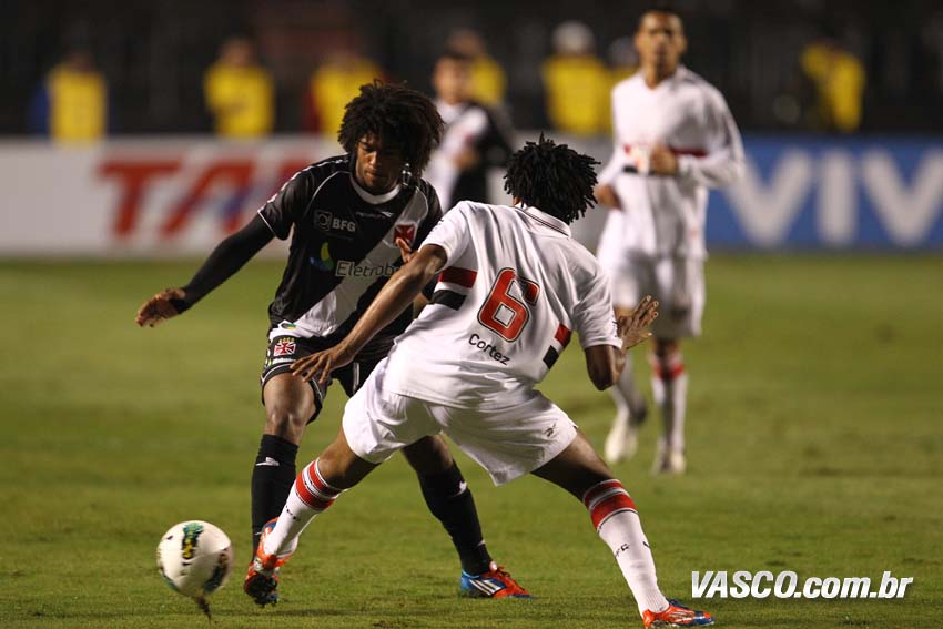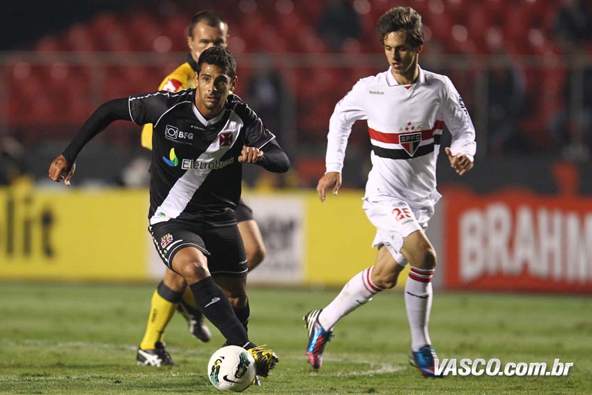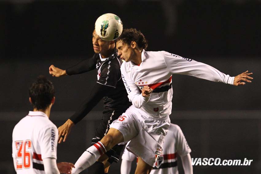 O primeiro tempo começou com o São Paulo melhor e terminou com o Vasco absoluto em campo. No Tricolor, Ney Franco surpreendeu ao escalar o garoto João Schmidt, cria das categorias de base, na vaga de Casemiro. Com isso, o losango usado sem sucesso no clássico contra o Palmeiras deu lugar a um quadrado no meio-campo. Já o Vasco, que entrou em campo com seis desfalques, sofreu para encaixar sua marcação nos primeiros dez minutos.