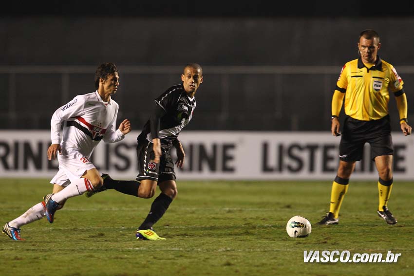 Em campo, a equipe lutava, mas pecava pela falta de qualidade. Jadson não criava nada. A única chance surgiu aos 28, quando Luis Fabiano recebeu sua única assistência na partida e tocou na saída de Fernando Prass, à direita da meta vascaína. No mais, a bola ficou o tempo todo nos pés dos visitantes. E o Vasco ainda perdeu várias chances de marcar. João Filipe evitou um gol de Alecsandro e Denis ainda fez mais três defesas em chutes de Juninho Pernambucano e Carlos Alberto.