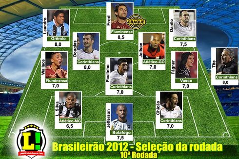 A seleção da décima rodada do Brasileirão 2012 não poderia deixar de contar com destaques da vitória arrebatadora do Corinthians sobre o Flamengo, por 3 a 0. Quatro corintianos estão entre os onze e puxam um time formado por jogadores de sete equipes diferentes, mostrando uma rodada em que os grupos foram mais importantes do que os talentos individuais. Com essa característica, só mesmo Tite poderia ser o técnico da rodada.