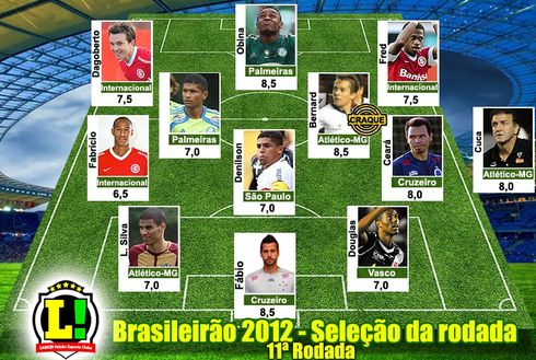 A seleção da 11ª rodada do Brasileirão 2012 foi comandada por Atlético-MG e Internacional. Liderada pelo craque Bernard, que marcou um gol e participou de outros três na goleada por 4 a 1 do Atlético-MG sobre o Sport, os onze principais destaques contaram ainda com mais duas notas iguais à do meia do Galo. Foram elas de: Obina, que deixou o dele e esteve presente em outros dois na vitória do Palmeiras por 3 a 0 contra o Náutico, e Fábio, goleiro do Cruzeiro, que realizou verdadeiros milagres no triunfo de seu time por 1 a 0 sobre o Flamengo.