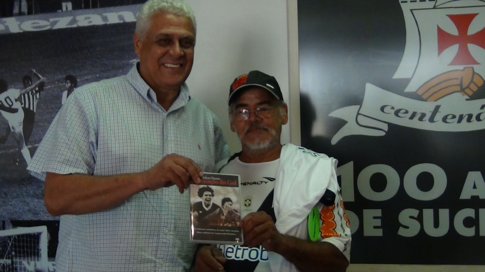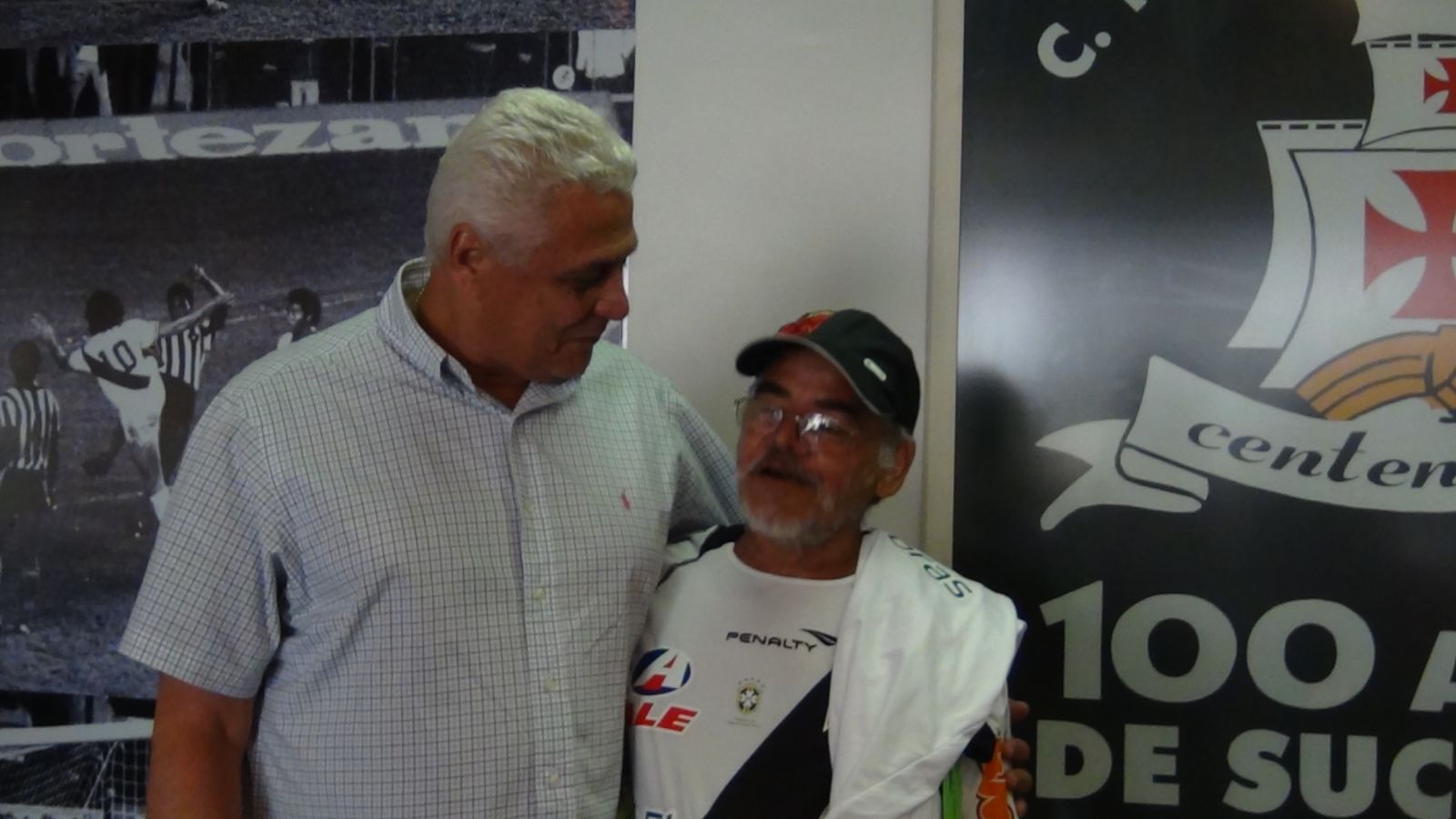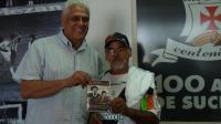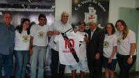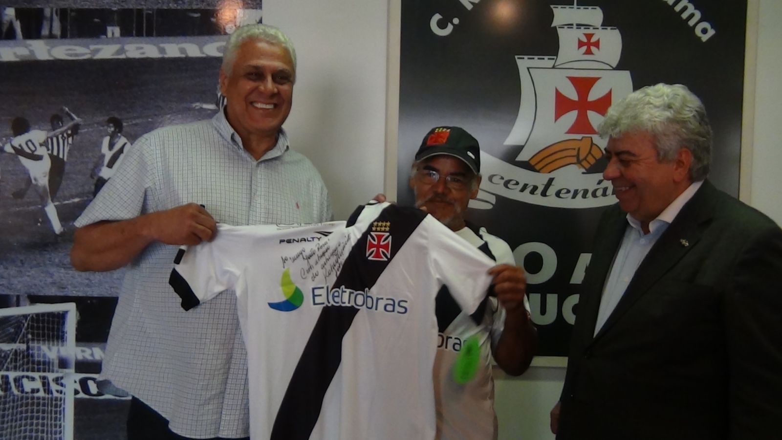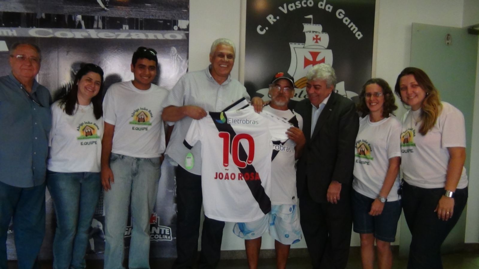 Muito atencioso, o mandatário vascaíno recebeu os voluntários do abrigo na sala da presidência e presenteou João Rosa com um DVD de seus gols e com a nova camisa do Vasco.