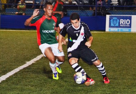 Felipe Facão recebe livre pelo lado esquerdo e chuta cruzado no canto do goleiro da Lusa Carioca.