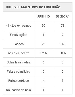 Juninho e Seedorf fizeram um duelo próximo. Ocuparam quase a mesma faixa do campo, embora o holandês - escalado mais pela esquerda - apresentasse uma movimentação ofensiva mais intensa, de um lado a outro do campo. O vascaíno atuava do centro para o lado direito.