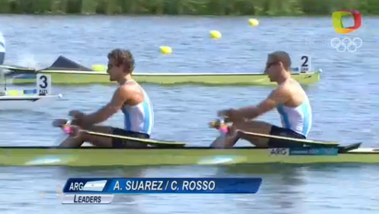 Os atletas argentinos Cristian Rosso e Ariel Suárez, que competem pelo Vasco, chegaram em 3º na bateria classificatória do duplo skiff e conseguiram a vaga para a semifinal com o tempo de 6:13.68.