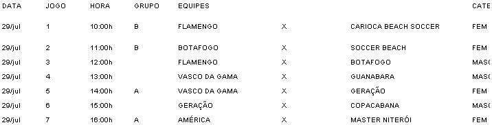 Amanhã, teremos mais 7 jogos, sendo 3 do Campeonato Carioca Masculino SUB-23 e 4 do Campeonato Carioca Feminino no mesmo local na praia do Leme (quase em frente ao antigo Hotel Meridien). Contamos com a presença de todos!