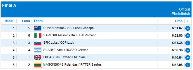 Os atletas argentinos Cristian Rosso e Ariel Suárez, que competem pelo Vasco, chegaram em 4º na Final olímpica com o tempo de 6:36.36 e não conquistaram medalha.
