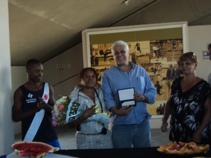 O mandatário vascaíno acompanhou todas as provas ao lado de Maria Cristina, diretora do Colégio Vasco da Gama, que juntamente com Roberto Dinamite, homenageou a coordenadora de atletismo do Vasco, com a entrega de uma placa em nome da escola.