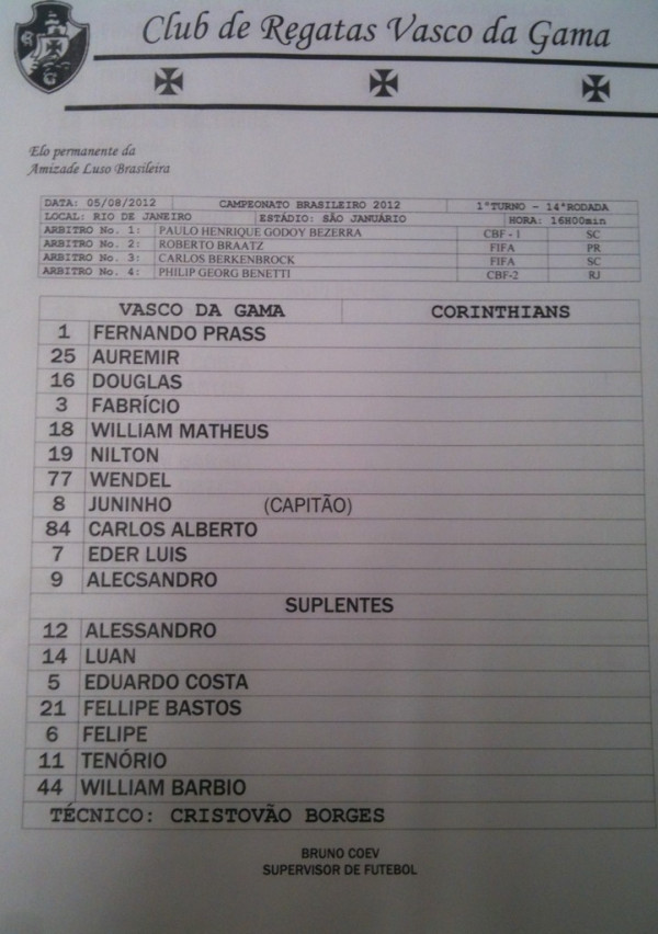Notas de Tenorio no Troféu NETVASCO