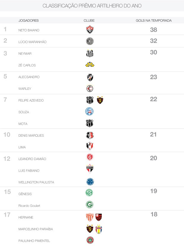 No entanto, quem parece estar cada vez mais disposto a chegar na frente é Lima, do Joinville. Nas duas últimas rodadas o artilheiro deixou o seu e soma 21. Ele deixou para trás o pelotão dos 20 gols, que tem Leandro Damião, atualmente com a Seleção, Luis Fabiano (São Paulo) e Wellington Paulista (Cruzeiro). Quem pegou o embalo e está empatado com Lima é Denis Marques, do Santa Cruz, autor de um gol de pênalti contra o Icasa, pela Série C. Um pouco acima, Mota, do Ceará, atingiu a marca de 22 gols.