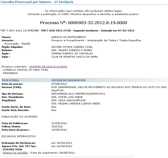 Justiça mantém resultado de eleições de 2011 até que mérito seja julgado