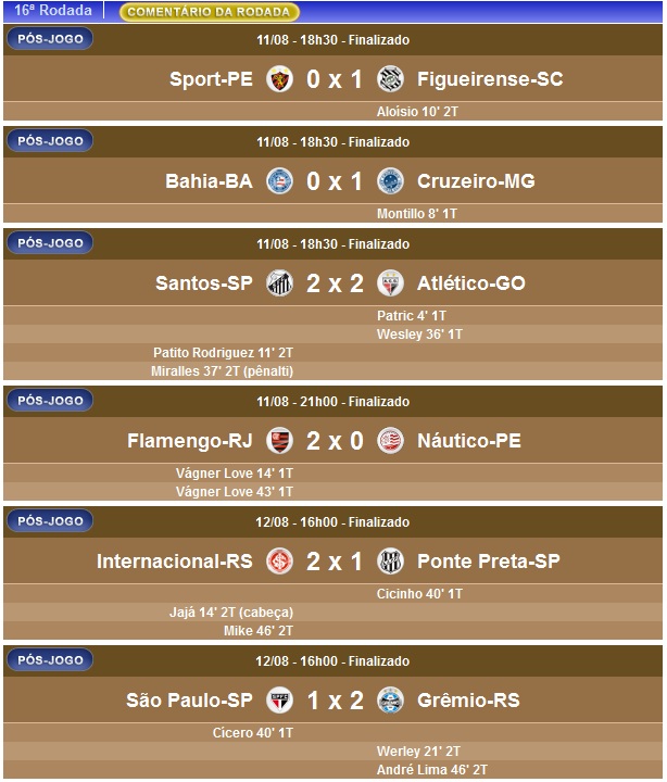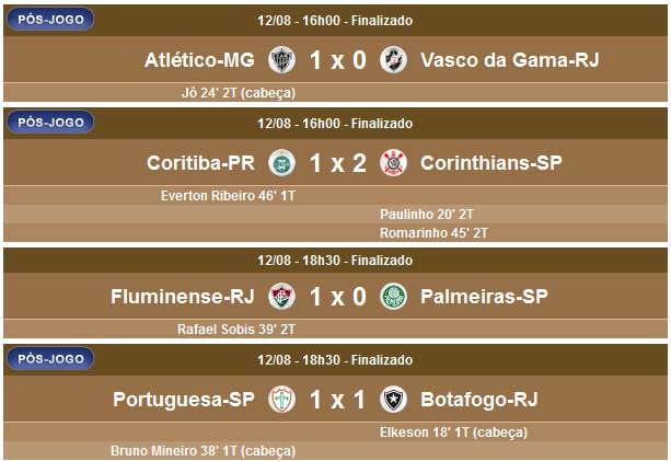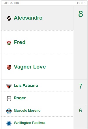 Com 8 gols, Alecsandro se mantém como artilheiro do campeonato e tem a companhia de Fred, do Fluminense, e Vagner Love, do Flamengo.
