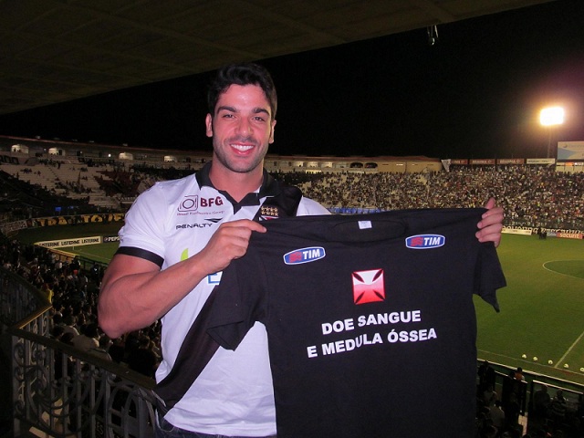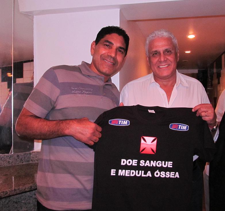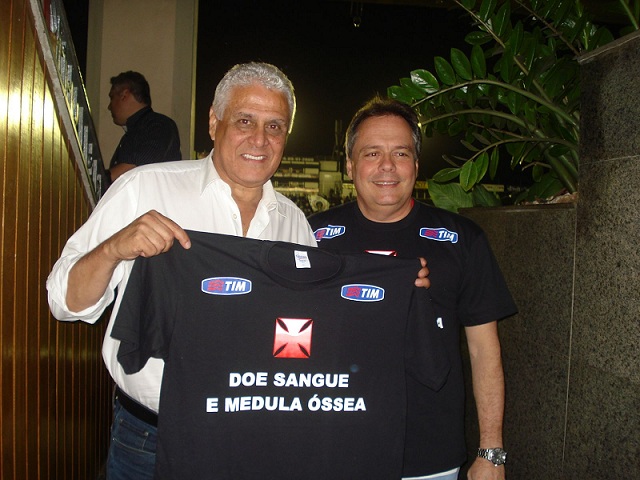 Presentes na Tribuna de Honra de São Januário na noite da última quinta-feira (16/08), acompanhando a partida entre Vasco e Coritiba pelo Brasileirão, o modelo Kadu Parga e o ex-goleiro Acácio exibiram no intervalo de jogo, a camisa da campanha de doação de sangue “Vascaíno é sangue bom”.