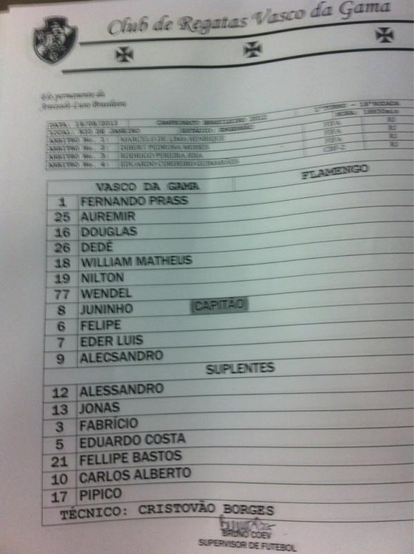 Fonte: Twitter da assessora de imprensa do Vasco Patrícia Gregório