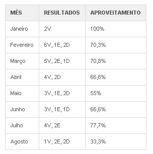 O Vasco tem mais dois compromissos no Campeonato Brasileiro até o dia 29. Mas, em São Januário, o sentimento é de que agosto poderia terminar agora. O mês é o de pior aproveitamento da equipe na temporada. Foram conquistados apenas 33,3%, quase metade da média de 66% de aproveitamento do time em 2012.