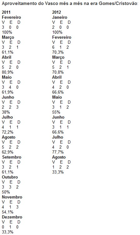 Um agosto com gosto para lá de amargo para os vascaínos. Com o revés frente ao Flamengo, no domingo, o time passou a somar, no mês, duas derrotas, dois empates e apenas uma vitória. É, até o momento, o mês de pior aproveitamento da era Ricardo Gomes/Cristovão Borges, que teve início em fevereiro do ano passado.