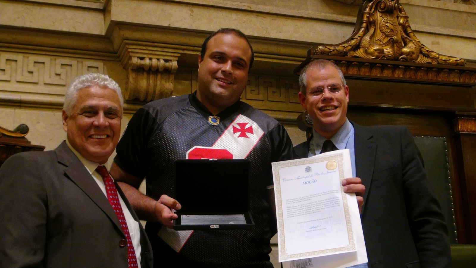 Na mesa da tribuna do plenário, estiveram presentes, o presidente do Vasco, Roberto Dinamite, o vice-presidente geral do clube, Antonio Peralta, Antonio Peralta, Nelson Rocha (segundo vice geral), o idealizador da homenagem, o vereador e vice-presidente do Conselho Deliberativo, Roberto Monteiro, o diretor de marketing e orador oficial da sessão solene, Fernando D’Avila “Fernandão”, Helio Donin (presidente do Conselho Fiscal) e Abilio Borges (presidente do Conselho Deliberativo).