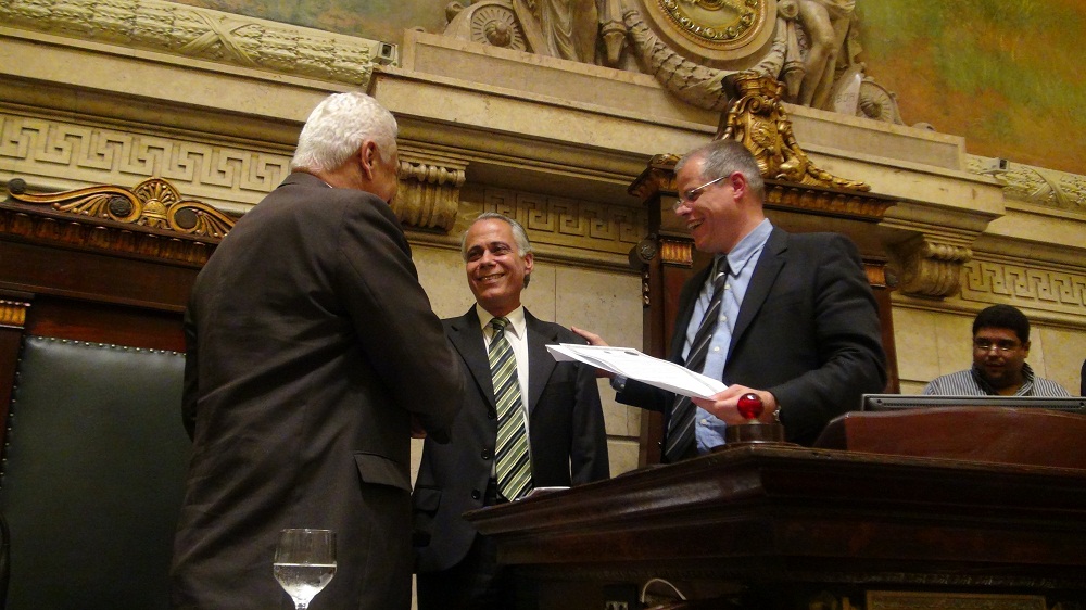 Em nome das atletas, o diretor do futebol feminino do Vasco, Tadeu Correia recebeu a placa no plenário, das mãos do presidente do Vasco, Roberto Dinamite e do vereador Roberto Monteiro. O diretor Tadeu rasgou elogios ao presidente cruz-maltino, ao departamento de futebol feminino e para as belas atletas, que arrancaram gritos de “é campeão” e “lindas” da plateia.