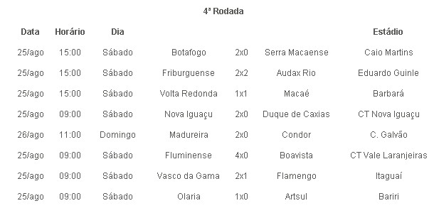 Fonte: FFERJ (resultados), NETVASCO (classificação)