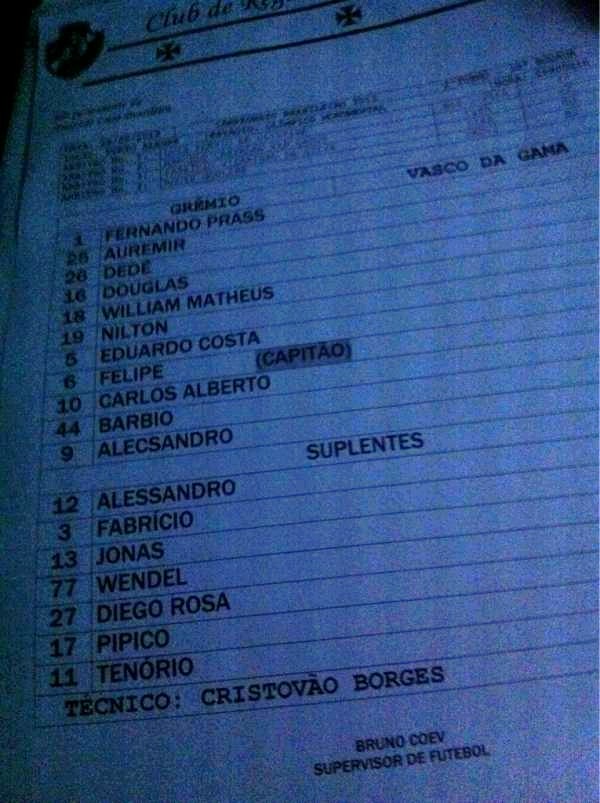 Fonte: Twitter da assessora de imprensa do Vasco Patricia Gregório