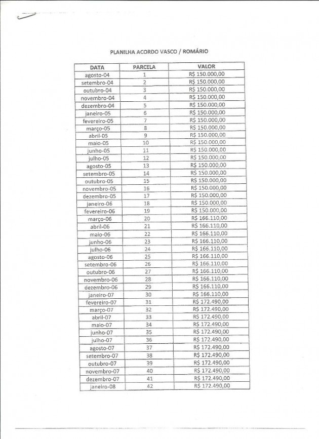 Já que também se tocou no assunto Romário, apresentamos abaixo a planilha de pagamentos efetuados até a saída da Diretoria anterior ao ex-jogador. O acordo vinha sendo cumprido. Quem o deixou de reconhecer, lesando o clube de forma irresponsável, que assuma as consequências: