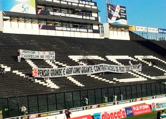 Um grupo de integrantes da Força Jovem do Vasco, torcida organizada que está proibida de frequentar estádios por seis meses, orquestrou na tarde desta sexta-feira um protesto durante o treino do Vasco. Os manifestantes estenderam uma faixa com os seguintes dizeres: "Pensar grande é agir como gigante. Contratações de peso e técnico de ponta". Em outras duas faixas, o grupo pedia a realização de clássicos em São Januário e que os jogadores "honrem a cruz de malta".