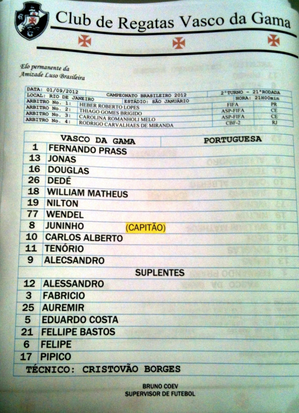 Fonte: Twitter do assessor de imprensa do Vasco Vinícius Gonçalves