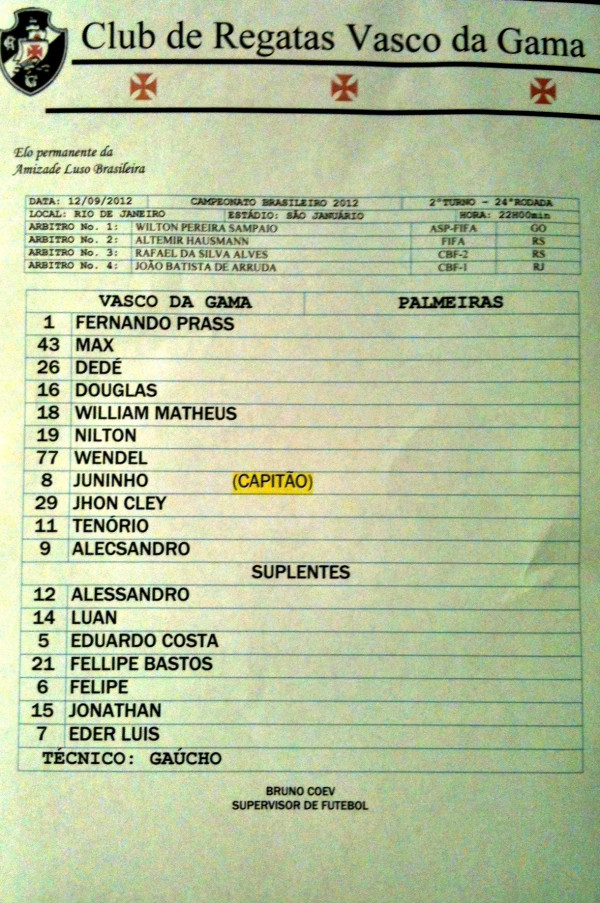 Fonte: Twitter do assessor de imprensa do Vasco Vinicius Gonçalves