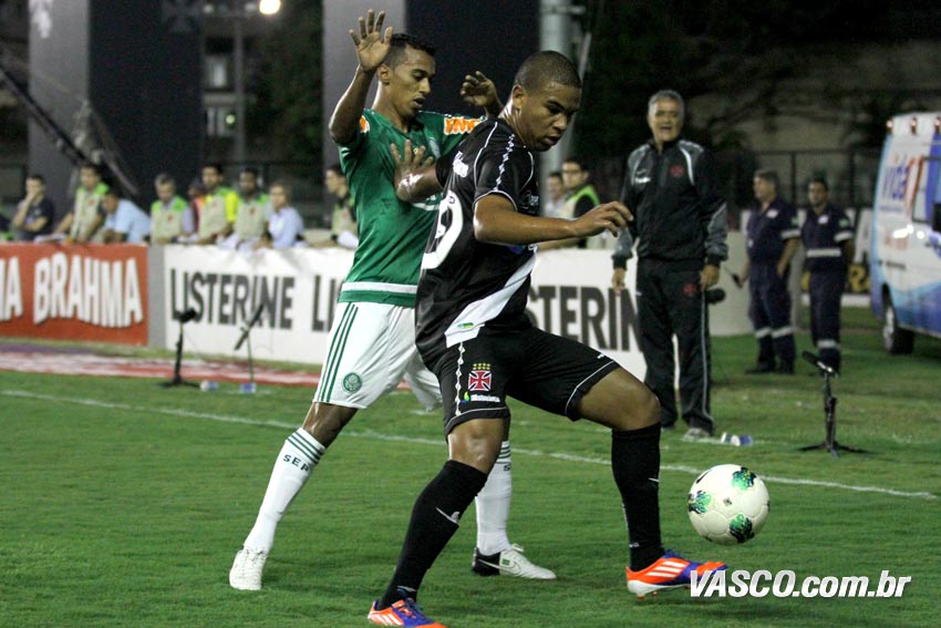 A postura adotada pelo Palmeiras no início da partida, com marcação bem adiantada, dificultou muito as saídas de bola do Vasco, mas com Tenorio abrindo pela esquerda e fazendo boas jogadas com velocidade e força, a equipe da casa conseguiu ameaçar o adversário. Na primeira vez que o equatoriano foi à linha de fundo e cruzou forte, quase Wellington fez contra, aos três minutos. Logo depois, numa meia-bicicleta de Douglas, Bruno salvou com um tapinha para escanteio. A pressão vascaína fez o time paulista passar a aparecer mais no setor ofensivo nos contra-ataques.
