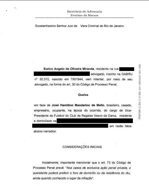 Nota da NETVASCO: Dados pessoais de Eurico Miranda e José Hamilton Mandarino foram ocultados.