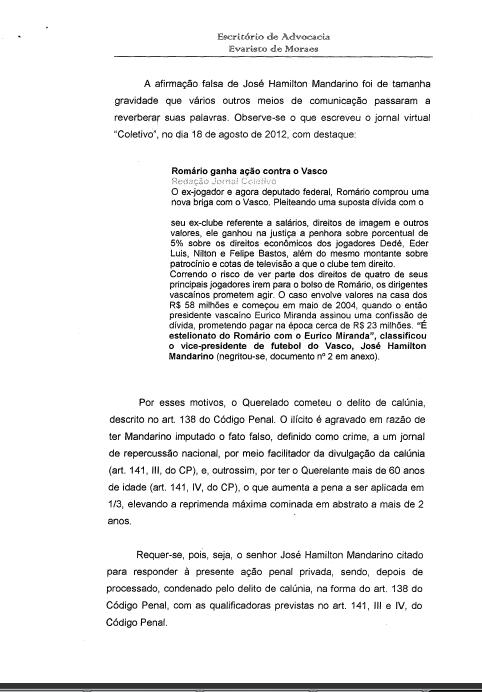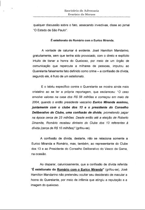 Eurico Miranda aciona José Hamilton Mandarino na Justiça