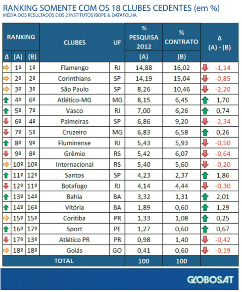 *Os números divulgados contemplam apenas os 18 clubes com contrato renovado por três anos na cisão do Clube dos 13.