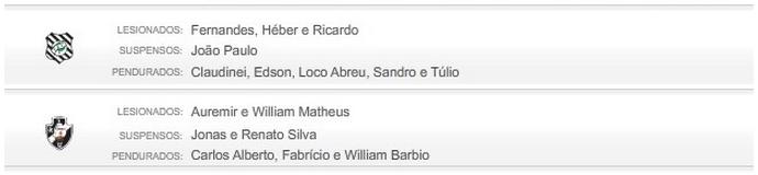 Saiba quem são os lesionados, suspensos e pendurados de Vasco e Figueirense
