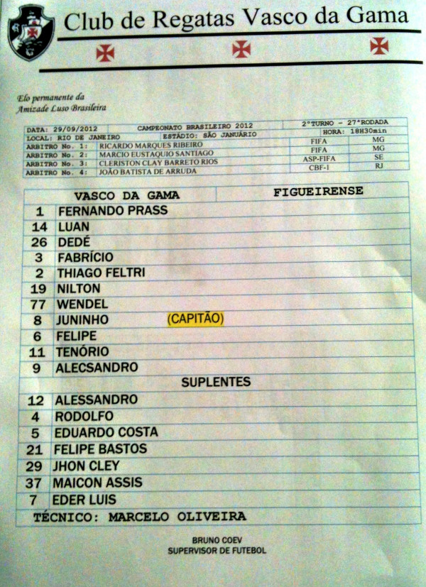Fonte: Twitter do assessor de imprensa do Vasco Vinicius Gonçalves