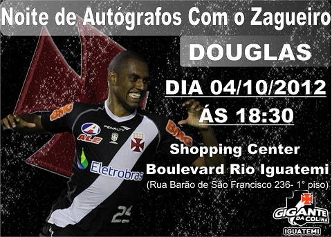 Nesta quinta-feira (04/10) a Gigante da Colina do Shopping Iguatemi vai receber o zagueiro Douglas. O defensor estará na loja, localizada na zona norte do Rio, para uma noite de autógrafos a partir das 18h30.