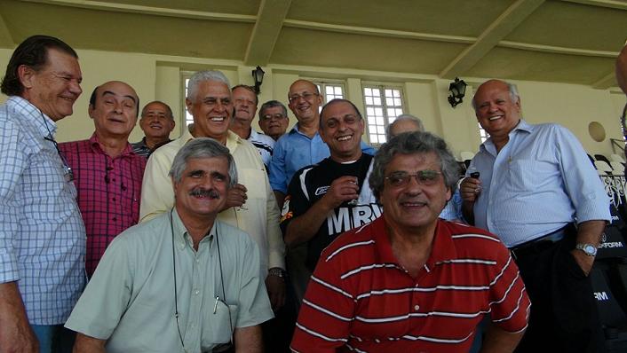 Na manhã desta quinta-feira (04/10), um grupo de vascaínos se reuniu em São Januário para comemorar o 45º aniversário de formatura da turma Marechal Castelo Branco, do colégio Militar do Rio de Janeiro. O vice-presidente médico do clube, Manoel Moutinho, esteve presente ao lado dos ex-colegas de classe na tribuna de honra da Colina Histórica. Esta é a quarta vez que o grupo se reúne para comemorar a data. Os vascaínos ainda aproveitaram para tirar fotos com o presidente Roberto Dinamite, que compareceu ao evento. Depois de tietarem o ídolo do clube, os formandos da turma de 1967 almoçaram no restaurante de São Januário.