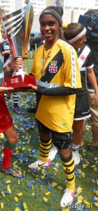 "Graças a Deus tem sido maravilhosa. Posso dizer que tenho bastante titulos com o Vasco. Em 2009, ano que comecei, participei do meu primeiro campeonato Estadual sub-16. Não ganhamos, mas já foi um começo maravilhoso. Em 2010 fui campeã da Copa Almirante e foi escolhida destaque por ter sido a goleira menos vazada. Tenho dois titulos de campeã da Liga de Nova Iguaçu, e tenho o de campeã Estadual do ano passado. O mais grandioso foi o Mundialito lá em Portugal que conquistei nesse ano. Estamos agora indo buscar no Bi do Estadual sub-17".