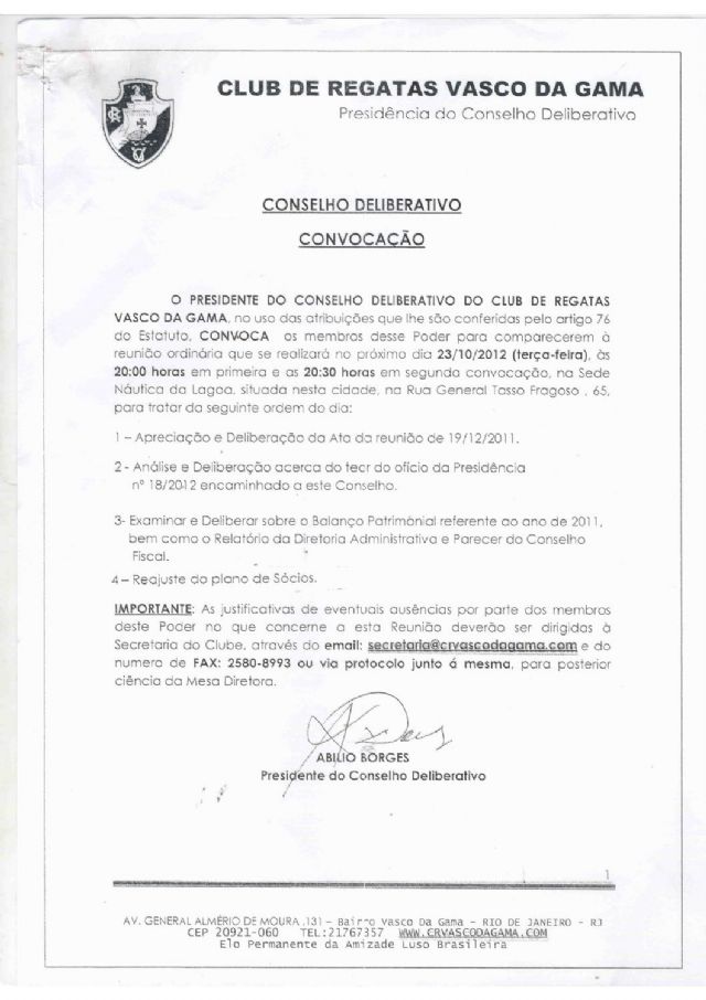 “Não acreditei na cara de pau da diretoria quando li a convocação da reunião. Como se já não bastasse o segundo item da pauta (pedido dos 120 dias), que é inexplicável, eu me deparei com esse pedido de reajuste da mensalidade. Se isso acontecer, é a consagração da política de gastos sem responsabilidade por quem governa pois, no final, o povo paga. É inadmissível que num clube cuja folha salarial é recheada de parentes e cabos eleitorais do presidente, que num clube aonde o Conselho Fiscal denuncia erros administrativos e irresponsabilidade no acompanhamento dos contratos que estão fazendo o Vasco perder dinheiro mensalmente, que num clube onde os sócios participam de um programa que não funciona e que os obriga a lutarem para permanecerem quites com o Vasco, alguém fale em aumento de mensalidade. Esse pleito só pode ser uma piada com os sócios.” , reclamou Leonardo.