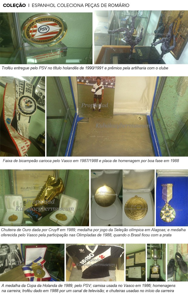A torcida de Dani pelo Barcelona não significa que sua coleção seja exclusiva de itens ligados ao time. Ainda assim, não há como negar que há um predomínio de “objetos catalães”, do húngaro László Kubala até o argentino Lionel Messi. A parte de Romário reserva dezenas de objetos, como medalhas, fotografias antigas, camisa do Vasco, troféus de artilheiro na época de Holanda e outros prêmios, exibidos em um site chamado "Kubala Cybermuseum". E ele garante que não se desfaz de nada.