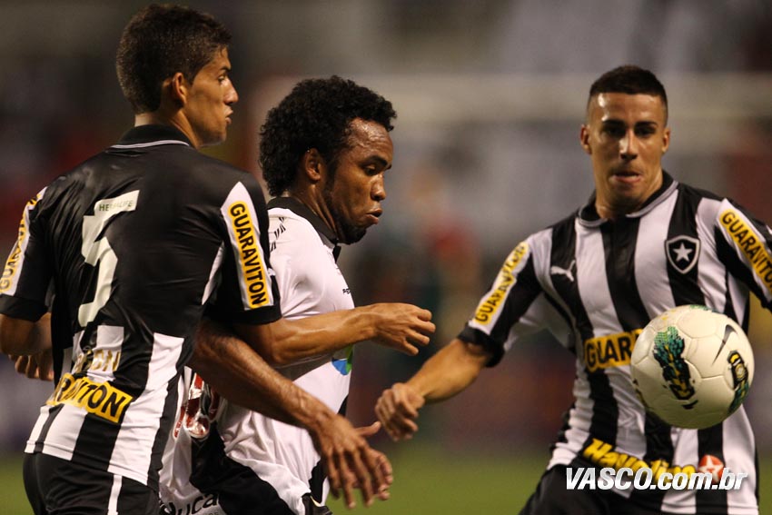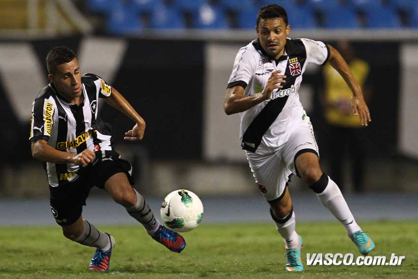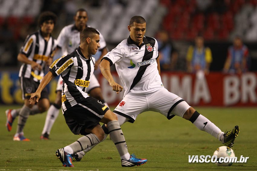 A chuvosa noite desta quinta-feira, no Engenhão, parecia que seria de Carlos Alberto, mas acabou sendo de Bruno Mendes. O meia do Vasco, improvisado no ataque desencantou, fez seus dois primeiros gols na Série A do Campeonato Brasileiro desde 2008, mas não foi suficiente para o time cruz-maltino sair com a vitória. O jovem atacante contratado recentemente do Guarani brilhou intensamente, e depois de dar o passe para o gol de Elkeson, fez dois no segundo tempo, um aos 47 minutos, e decretou a emocionante vitória do Botafogo, por 3 a 2.
