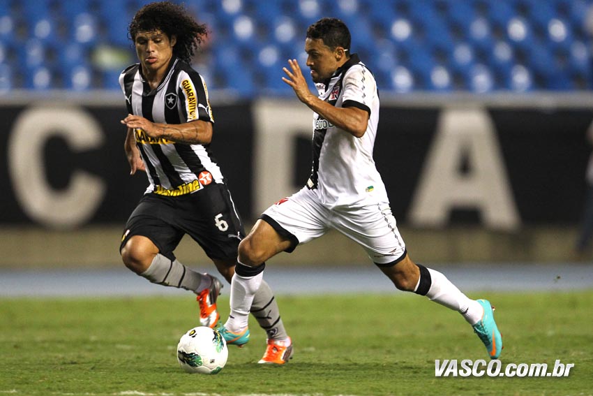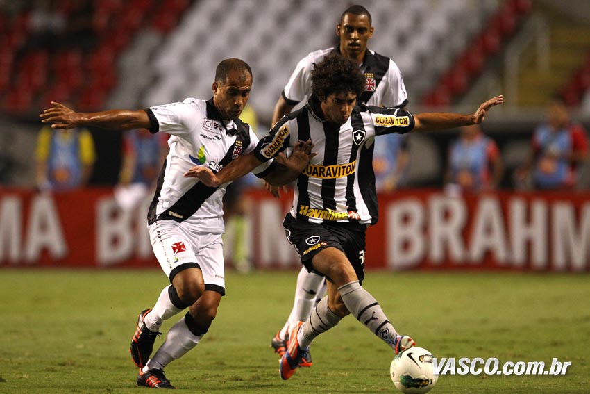Em tese o time que tinha mais a ganhar (ou perder) no clássico era o Vasco, que luta para voltar ao G-4, de onde saiu após 54 rodadas seguidas após a derrota de 2 a 0 para o Santos no domingo passado. E foi mesmo o time cruz-maltino que primeiro deu emoção ao jogo, aos oito minutos: após uma sucessão de passes e lançamentos errados de ambos os lados, Nilton deu de bandeja para Carlos Alberto, que livre na área diante de Jefferson demorou a concluir, tentou encobrir o goleiro e jogou por cima do travessão.