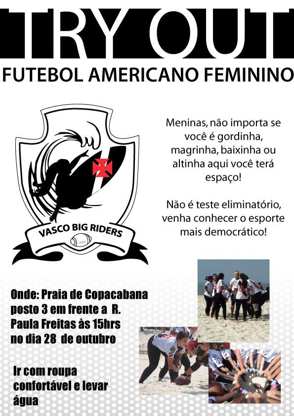 Futebol Americano Feminino: Vasco fará testes no dia 28/10 em Copacabana