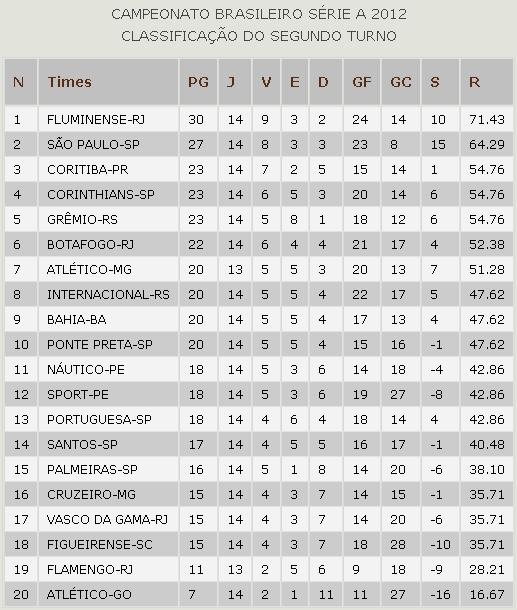 Tabela do Campeonato Brasileiro 2012