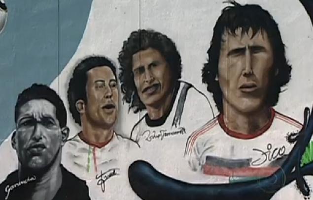 Com jatos de tinta, os artistas dão forma a paisagens e rostos conhecidos dos cariocas. "Tem o meu ídolo ali que é o Zico, que eu estou reconhecendo, o Dinamite...", diz uma passageira, apontando para o muro com as imagens dos craques do Flamengo e do Vasco, que estão ao lado do botafoguense Garrincha e do tricolor Fred.